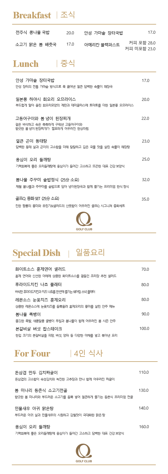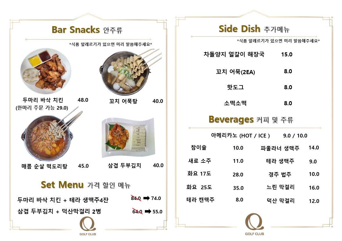 ※ 이용메뉴는 계절에 따라 상이하며, 원자재 가격 상승에 따라 이용요금은 달라질 수 있습니다.